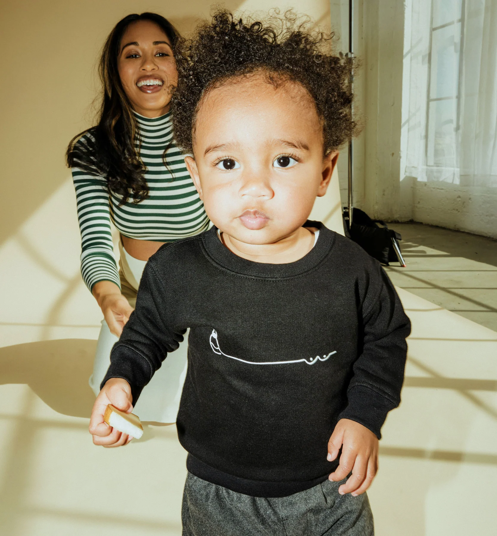 This mini crew is cozy, spit-up friendly and cut from the same cloth (just like you two) as our grown-up sweatshirt.